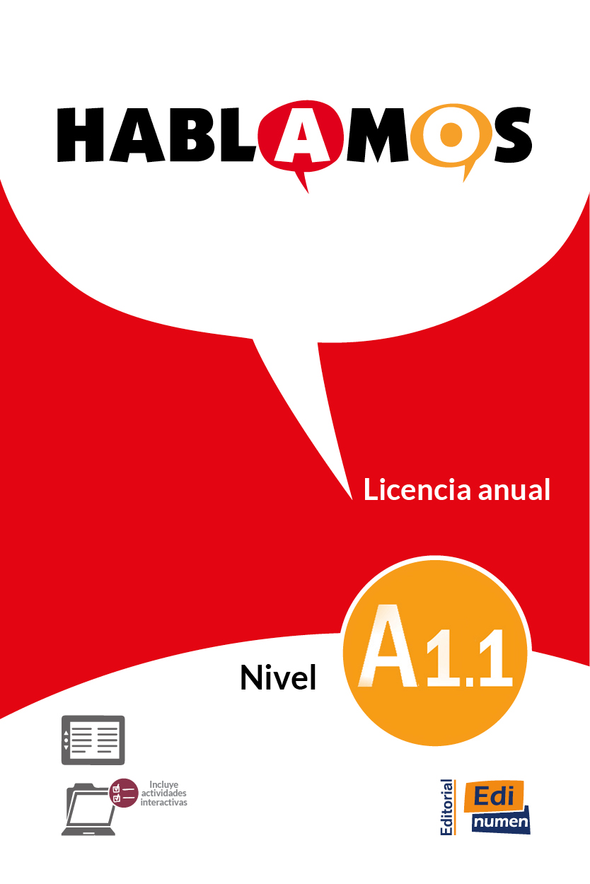 - Nivel A1.1 del curso Hablamos alojado en la ELEteca. Este nivel incluye 20 lecciones y tiene una licencia de 12 meses de duración desde su activación desde el momento de su activación.